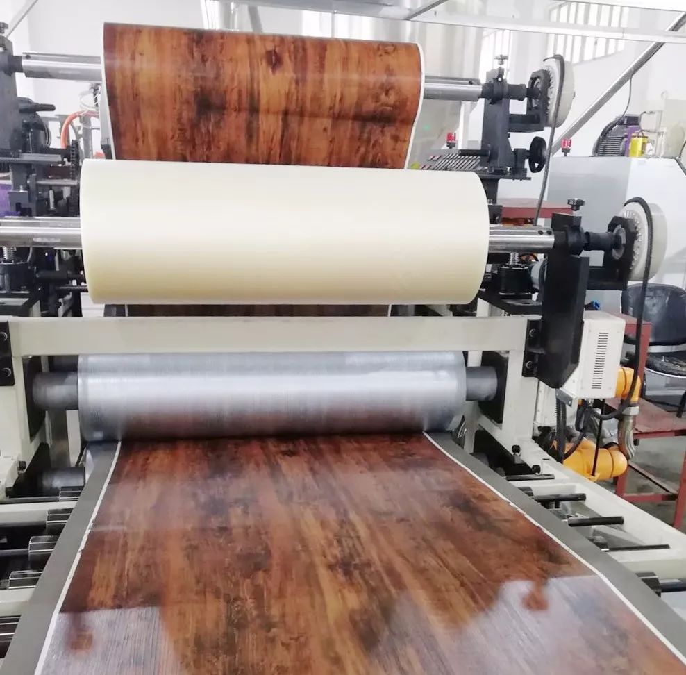 LVT soft composite floor  by extruder extrusion floor base material, then through a set of six roller for base material and printing layer composite machine, wear-resisting layer, layer of compound at the same time, through the rolling tension, wear-resisting layer accurate control of preheating, to put the volume not wrinkle, does not shrink, deformation, extrusion compound high production efficiency, product quality is stable.